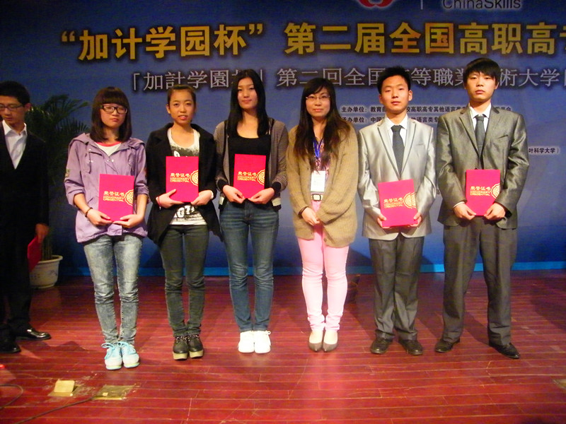 2012年10月17日至19日,“第二届全国高职高专日语技能大赛”在青岛举办,全国38所院校近200名选手参加了比赛,我院商务日语专业参赛团队荣获“团体短剧全国二等奖”和“个人演讲全国三等奖”的优异成绩。