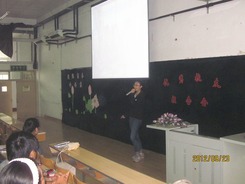 9月23日上午8时,国际商务外语系在博学楼D209教室为12级新生举办了一场优秀校友报告会。系主任张玉川,学生科科长高志刚出席了此次报告会。