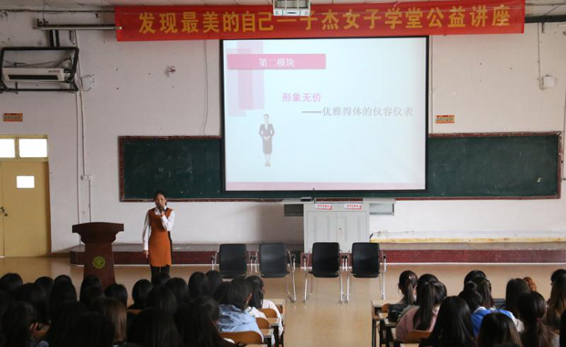国际商务外语系举办“发现最美的自己”公益讲座为塑造女大学生形象气质,提升就业能力,4月13日,国际商务外语系与潍坊子杰女子学堂在学院博学楼C206教室联合举办了“发现最美的自己”公益专题讲座,特邀潍坊市礼仪协会理事、资深优雅仪态导师王妍老师主讲,国际商务外语系和经济管理系的400余名女生听取了讲座。 王妍针对当前就业岗位对女生形象气质的要求,结合自身多年培训经验,通过具体的案例分析和现场体验,从“微笑是一种人生态度”、“形象无价”、“高贵典雅气质训练”等三个方面与现场同学们进行了分享和互动交流。 同学们听取讲座后表示受到了一次心灵的洗礼,得到了启发,进一步认识到形象礼仪的重要性,同时学会了如何发现并展示最美的自己。 本次讲座对进一步增强同学们的文明礼仪素养,不断提升综合素质和就业竞争力有着重要意义。