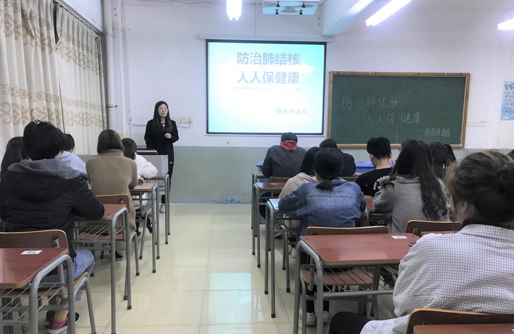 3月26日晚,商务外语系团总支组织18级速录班、日语班、韩语班全体共青团员在博学楼D209开展防治结核病知识宣讲活动,团总支书记担任主讲。