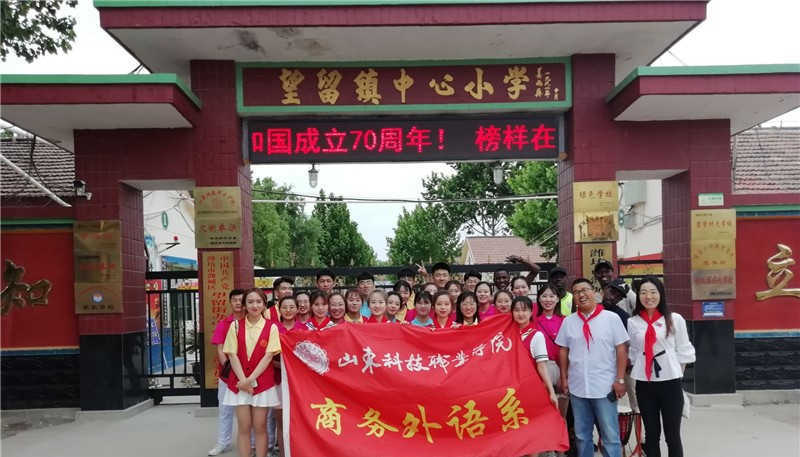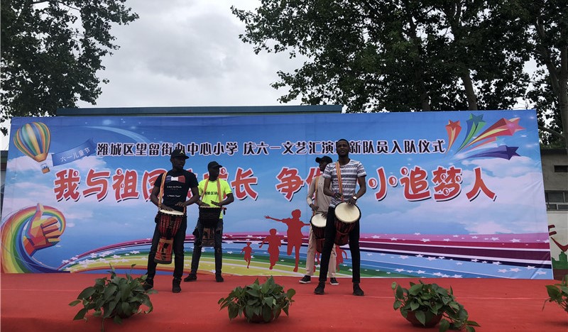 5月30日上午,商务外语系学生科科长、专职辅导员组织我院学生和留学生志愿者赴潍城区望留镇中心小学参加“庆六一”文艺汇演活动。