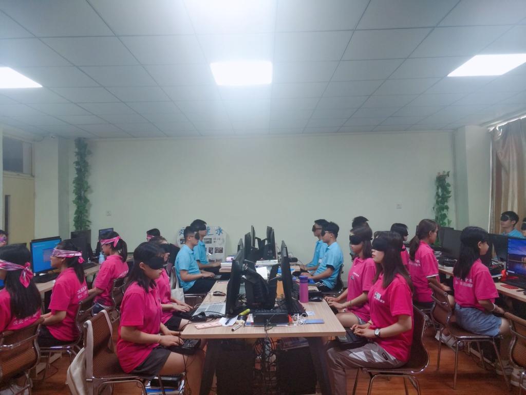 6月16日,商务外语系在博学楼D206举办了“蒙目听世界”文秘速录技能比赛,文秘速录社团全体同学参加,由文秘速录专业指导教师担任评委。
