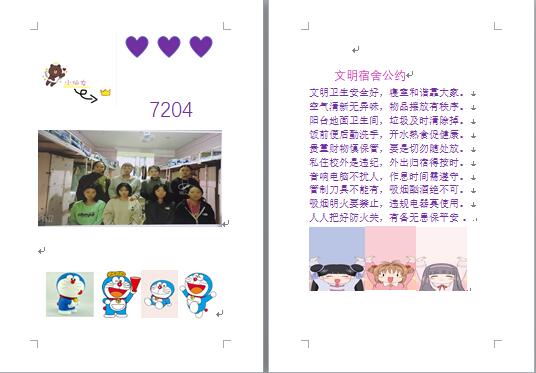 我系的同学们踊跃参加,7201,7204,7205,7210,7211,7203,7218,9226,9237,15104,15106的作品更为优秀,他们以个人宿舍为标准,制定了一套属于自己的宿舍公约,清晰明了,贴合生活,这些公约的制定并非自由的限制,而是感情的促进,安全的保障,问题的减少,俗话说,无规矩不成方圆,合理的公约制度是促进我们美好生活学习进步的一大因素,由此我相信山科学子的大学生活会更加美好,难忘,也会收获更多意想不到的成果。