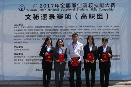 5月10日,2017年全国职业院校技能大赛文秘速录赛项在天津职业大学落下帷幕,来自全国28个省市、69所院校的207名选手参加。我系马义华老师指导的商务英语专业文秘速录方向王礼燕、张鲁鲁和工商管理专业魏义娇等3名同学组成的参赛队荣获团体二等奖。