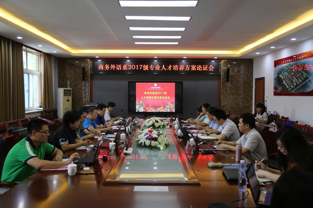 2017年9月3日上午,商务外语系在办公楼第一会议室召开2017级专业人才培养方案论证会。来自潍坊市经信委、潍坊市外事翻译中心、山东亚伟速录科技有限公司、潍坊十亩贸易有限公司、潍坊医学院及潍坊学院的七位专家应邀参会,学院副院长丁文利、教学中心主任李兴凯、商务外语系各专业负责人及部分教师代表出席会议。论证会由商务外语系专任迟尧林主持。