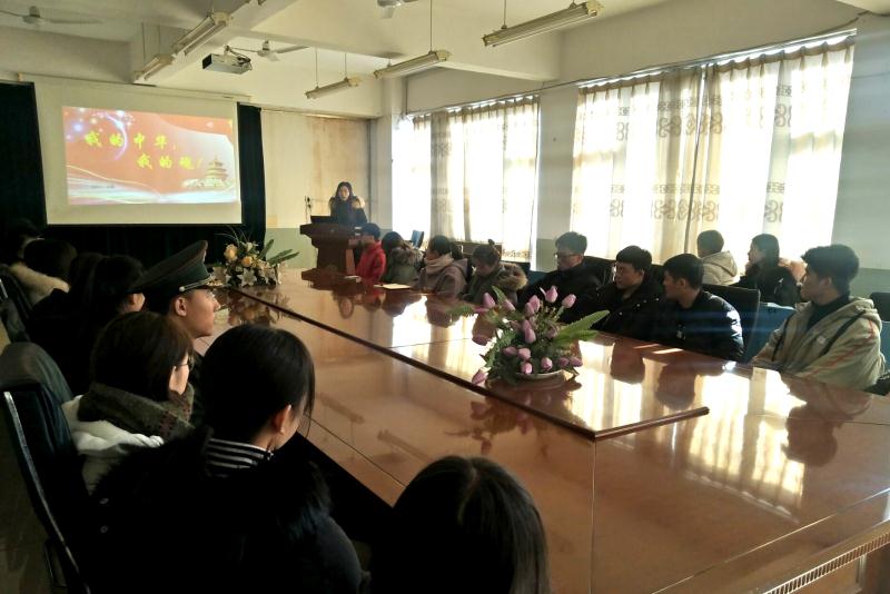 12月12日中午,商务外语系团总支在博学楼D209教室组织开展了以”我的中华,我的魂”为主题的团课活动。参与此次活动的有商务外语系学生科杨淑艳老师、团总支成员、2018级各班团支书以及2018级文秘速录班全体团员。
