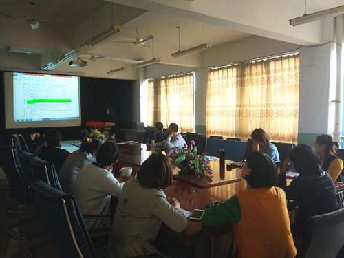 10月17日下午,商务外语系在博学楼D209教室组织开展了“优化课程教学设计,提升课堂教学质量”主题教研活动,商务外语系主任和全体专任教师参加。