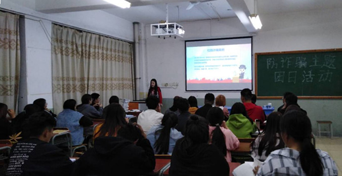 团总支副书记借助课件,首先通过一个个惨痛的案例,向同学们展示了网络电信诈骗的危害,并揭穿了惯用的犯罪手法。接着,又跟同学们提示了一些有效的防范措施。
