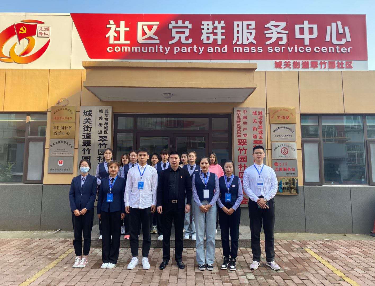 学生入党积极分子和社区党委书记合影