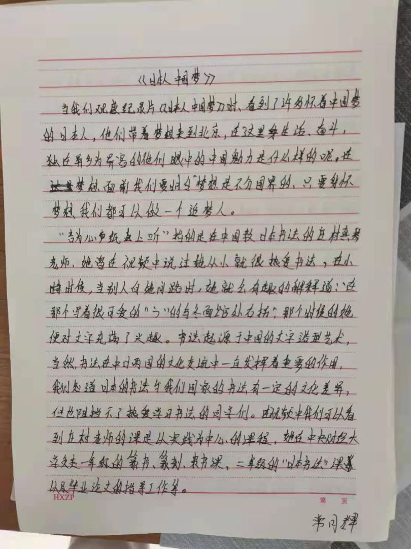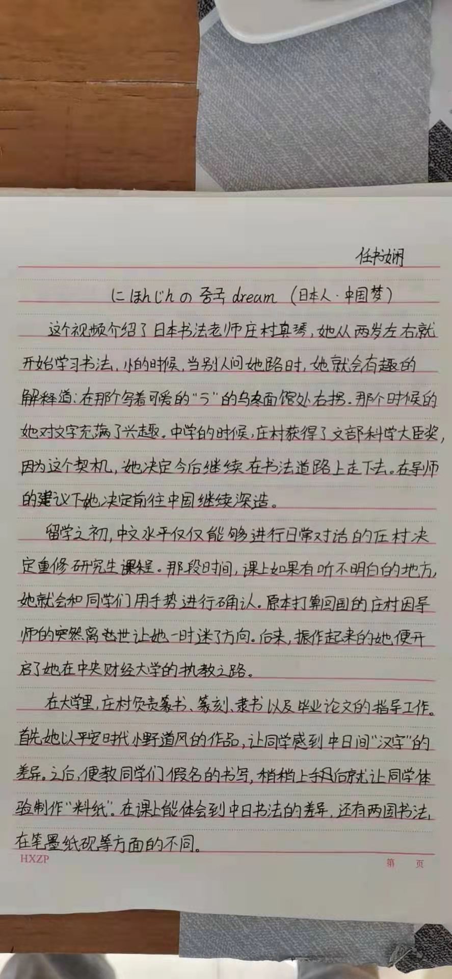 活动开始,学生们观看了纪录片的第一部分—“言为心声纸上听”。该部分记录了一位在中国教书法的庄村真琴的点滴细节以及心灵感悟,学生们感触十分深刻。随后,学生们就纪录片的内容展开了激烈的讨论并撰写了观后感。