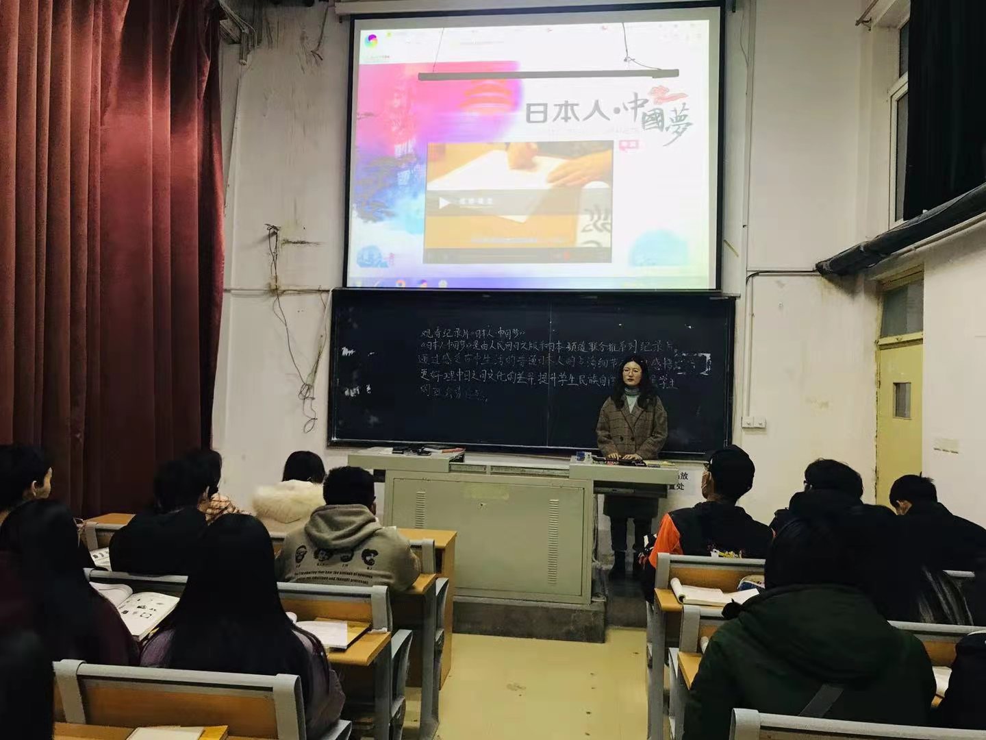 为了增强学生民族意识, 引导学生树立正确的人生观。近日,商务外语系组织日语专业学生在博学楼C111集中观看了纪录片“日本人 中国梦”。
