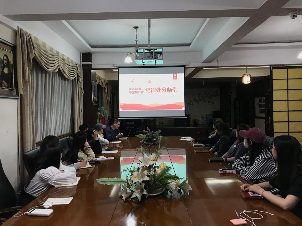5月8日晚,我系组织入党积极分子在博学楼D208举行了第三期入党积极分子培训班第二讲,此次邀请到教师党支部书记为大家带来主题为“学习《中国共产党纪律处分条例》”的课程。