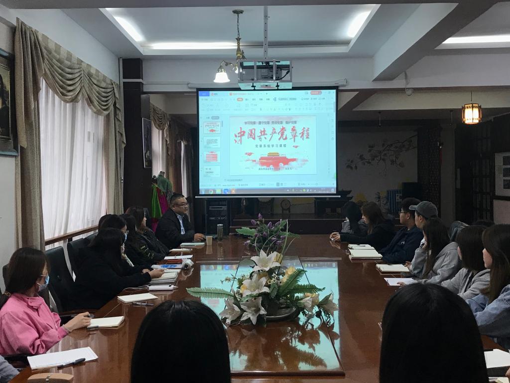 5月10日晚,商务外语系组织入党积极分子在博学楼D208举行了第三期入党积极分子培训班第三讲,本次党课培训由车老师主讲,主题为“中国共产党章程学习解读”。
