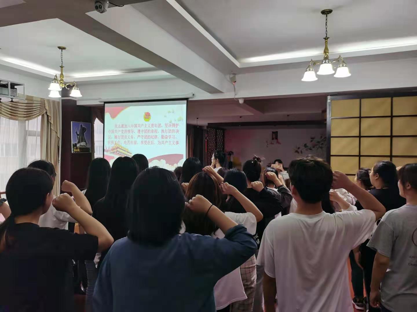 党的十八大以来,以习近平同志为核心的党中央亲切关怀青年成长成才,为做好新时代青年工作指明了前进方向。团总支书记强调,广大青年要牢记总书记嘱托,紧跟党走在时代前列,在学习中增长知识、锤炼品格,在工作中增长才干、练就本领。随后,团总支书记、副书记为“青马工程”学员代表佩戴团徽,并要求大家牢记自己的团员身份,做好党的助手和后备军,保持先进性,时刻不忘跟党走的初心。“我志愿加入中国共产主义青年团,坚决拥护中国共产党的领导......”活动最后,学员代表在团总支副书记的领誓下,重温入团时许下的神圣誓言。