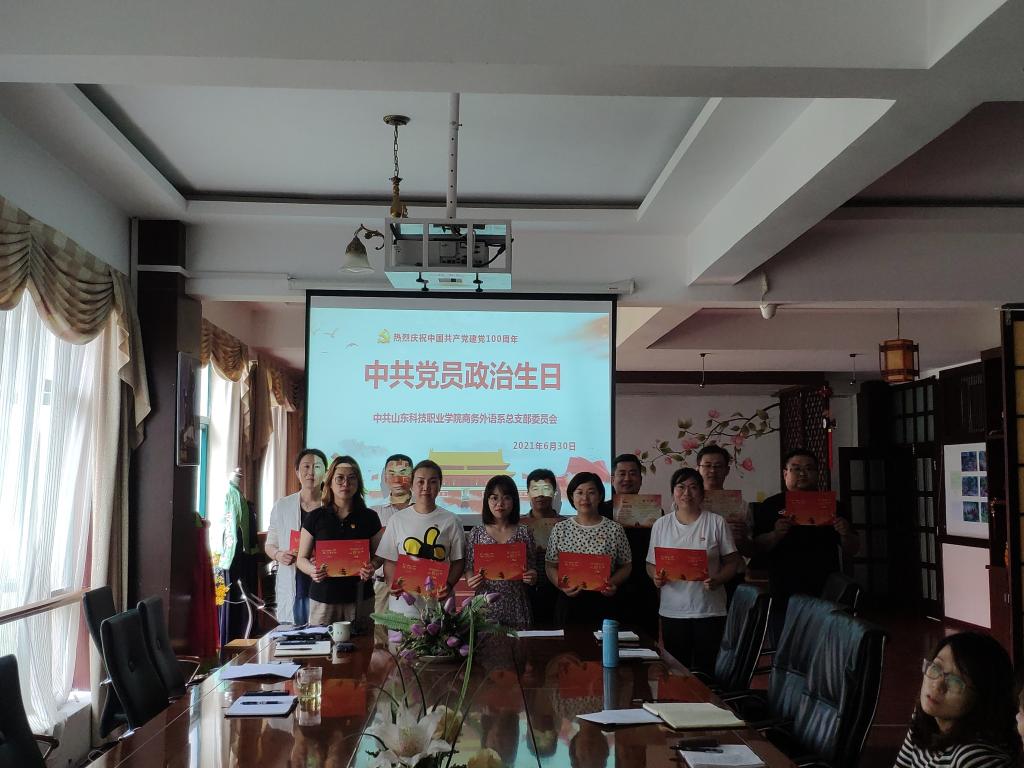 在中国共产党百年华诞来临之际,6月30日商务外语系党总支在博学楼D208开展“牢记党员身份,过好政治生日”主题党日活动,全体教师党员参加。