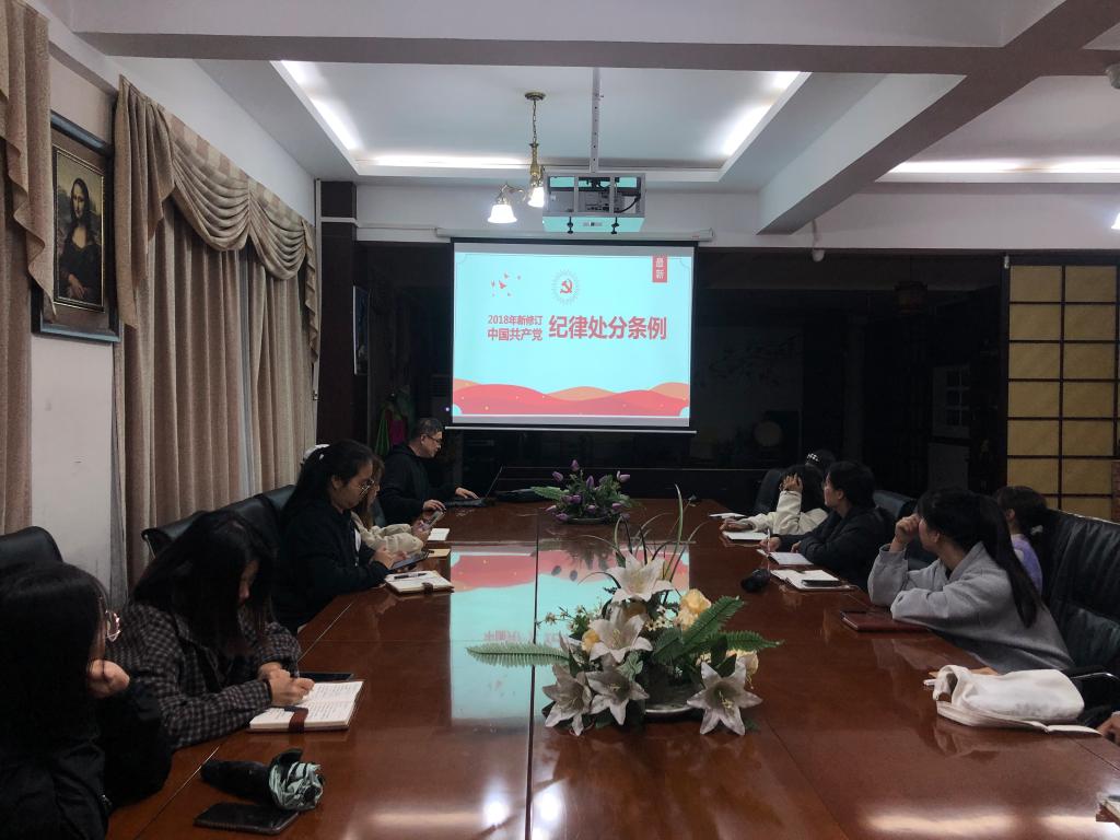 11月2日晚,商务外语系组织20级入党积极分子在博学楼D208召开入党积极分子培训课,由教师党员主讲。
