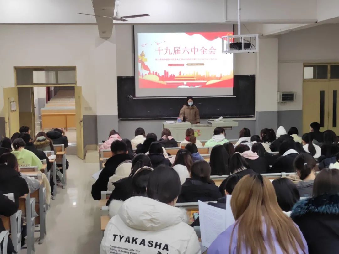 会议伊始,主讲人带领同学们了解了党的十九届六中全会的召开的背景,从全会的核心要义、重大意义、中国共产党百年奋斗的历史意义三个维度对全会精神进行了阐释和解读,随后,她提出了党的百年奋斗历程创造的伟大成就,是创造了新民主主义革命、社会主义革命和建设、改革开放和社会主义现代化建设、新时代中国特色社会主义的伟大成就。最后,主讲人对学习宣传贯彻全会精神和推动党史学习教育走深走实提出了具体要求,并号召同学们要用火一样的热情投入到学习生活中,充分发挥先锋模范作用,做遵规守纪的标兵、做勤奋学习的标兵、做助人为乐的标兵,在新时代新征程上自觉担当起党的助手和后备军的光荣责任,让青春在奋斗中焕发绚丽光彩。