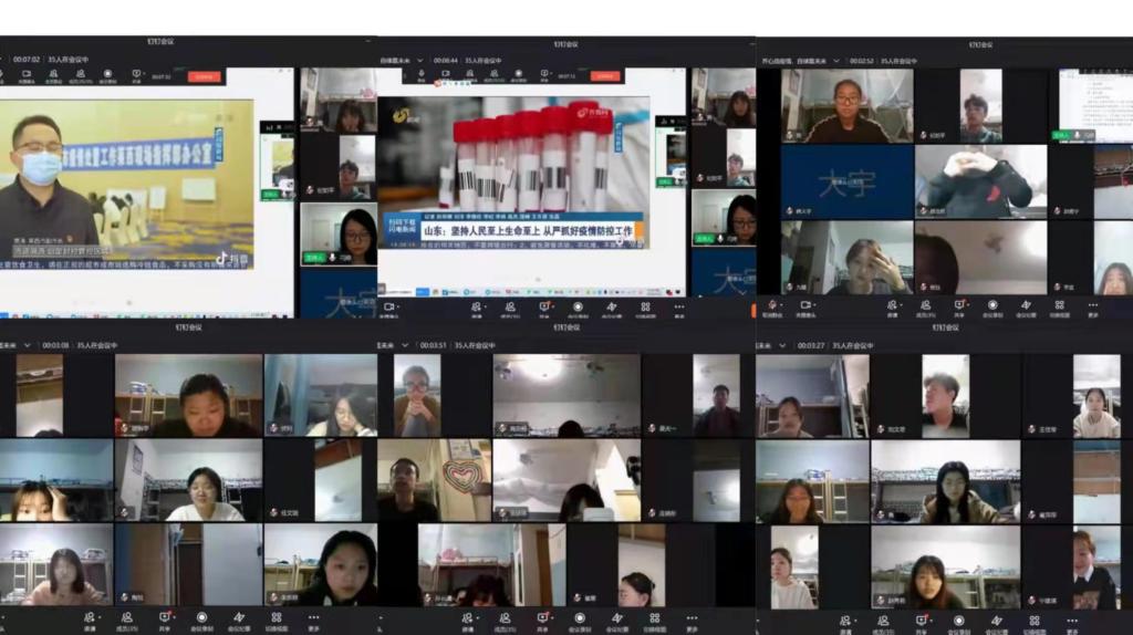 会上,老师向同学们传达学院疫情防控工作要求,及时通报疫情进展,并向同学们提出三点要求:一是积极配合学院防疫工作,不隐瞒,不谎报,准确、及时提供个人相关信息;二是做好自我管理与自我约束,严格遵守学院规章制度、坚持佩戴口罩、每天测温健康打卡、宿舍通风消毒;三是保持良好心态,科学理性对待疫情,思想上绝不放松警惕,措施上绝不降低标准,坚决把疫情风险阻挡在校园之外。最后,老师与同学们进行线上互动,对同学们的学习、生活和心理状况进行全面的调研,进一步掌握和了解同学们在学习生活中遇到的各种问题并及时进行了解答和解决。