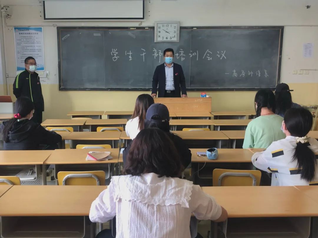 4月27日,商务外语系在博学楼D301教室召开学生干部培训会,党总支副书记及21级辅导员主持会议,全体学生干部参与会议。