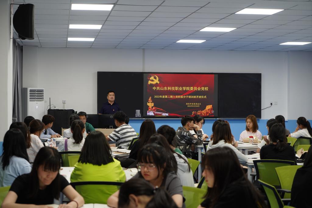5月26日,商务外语党总支在博学楼D209举行2022年度第二期入党积极分子培训班开班典礼暨开班第一课。培训班全体学员参加本次活动。开班仪式由党总支副书记主持。
