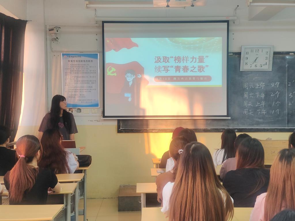 6月10日,商务外语系组织49学员代表在博学楼D310开展“青马工程”第三课,本次课程通过对《榜样五》的学习来传承党的精神,由20级团总支负责人主讲 。