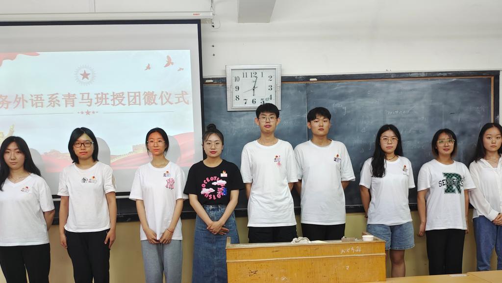 6月14日,商务外语系组织49学员代表在博学楼D310开展新团员授徽仪式及“青马工程”第四课,由教师党员主持 。