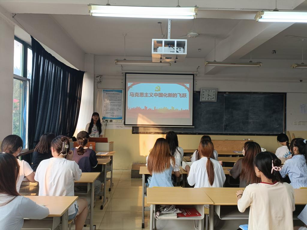 6月21日,商务外语系组织49学员代表在博学楼D310开展“青马工程”第九课,本次课程通过解读马克思主义中国化的飞跃来传承党的精神。由20级团总支负责人主讲 。