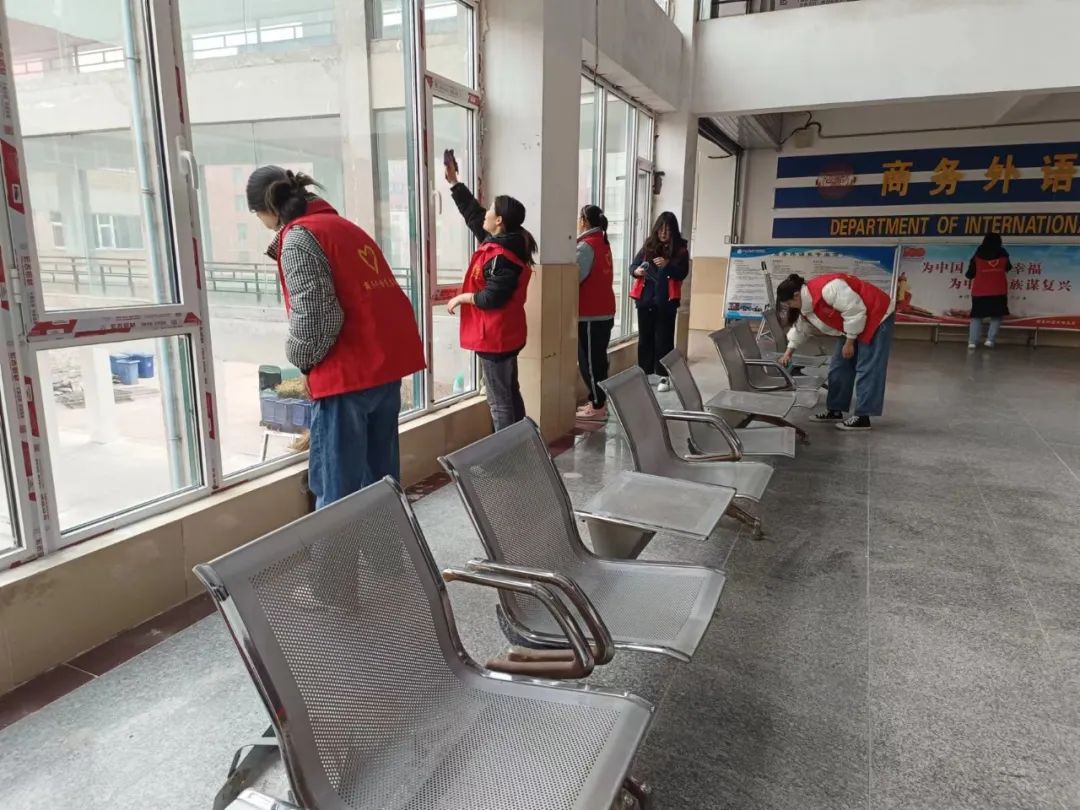 为创建一个整洁、优美、舒适的学习环境,2月18日上午,商务外语系组织志愿者在博学楼D区进行环境卫生清洁志愿服务。