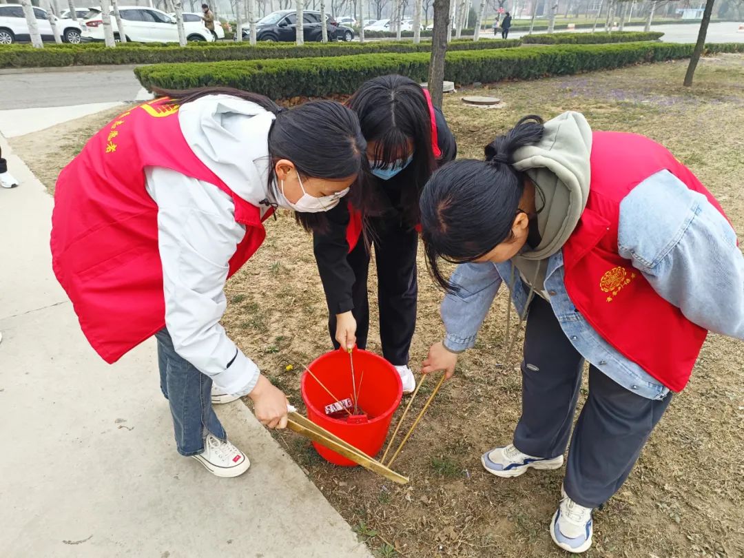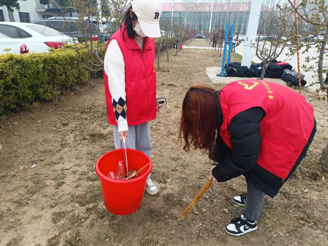3月22日下午,商务外语系响应爱国卫生运动号召,组织青年志愿者在办公楼前广场、经纬广场开展“美丽生态校园我行动”卫生治理志愿活动。