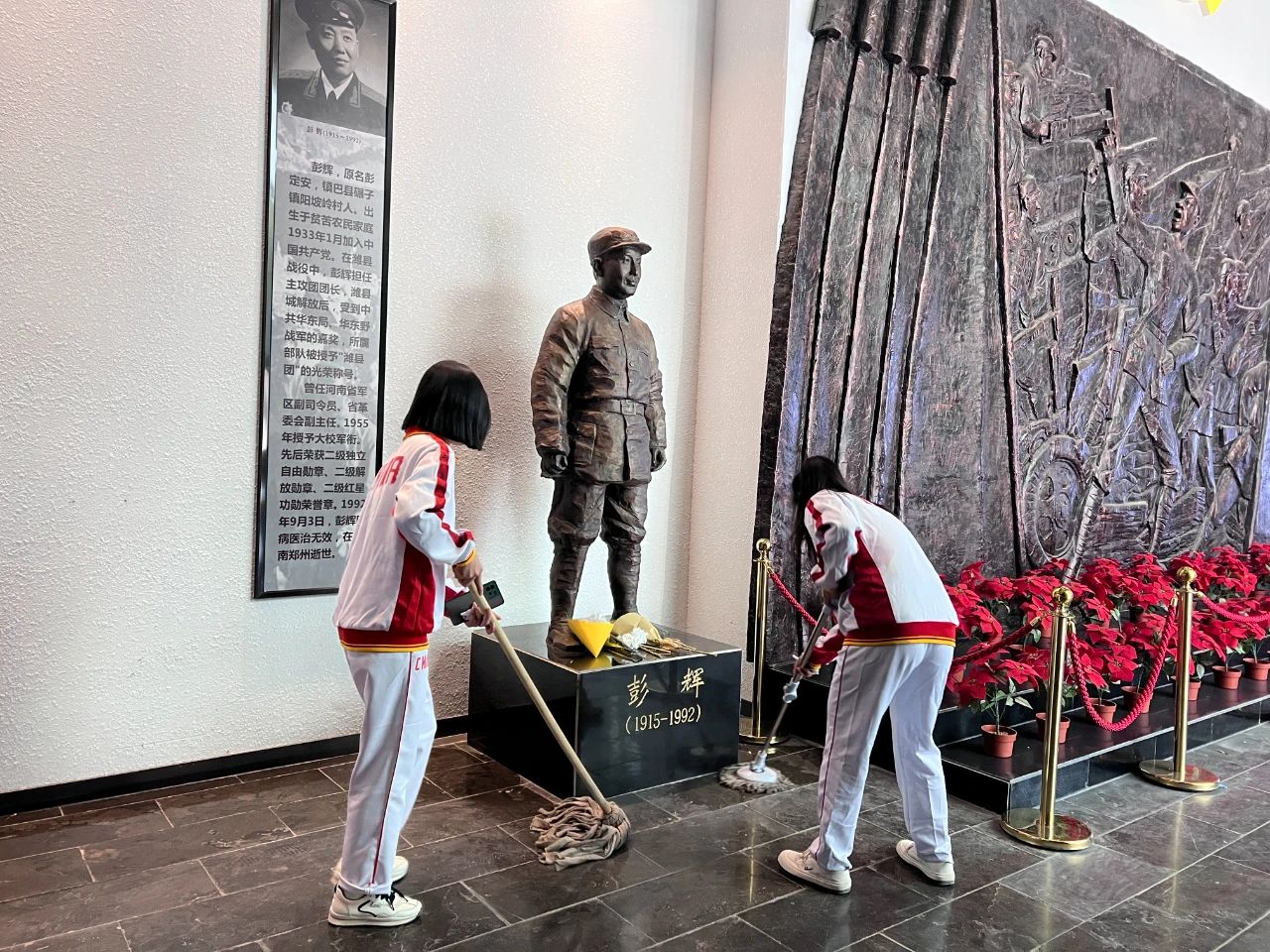 伴随着庄严的国歌,同学们在烈士墓前肃立默哀,并向纪念碑敬献花圈,表达对烈士的深切悼念。同学们面对团旗重温入团誓词,许下赓续爱国主义精神、勇负使命担当的誓言。紧接着,同学们参观烈士陵园,学习、感悟革命先烈在逆境中坚毅勇敢、战斗不息的宝贵品质。随后,同学们怀着对革命先烈的崇高敬意,在陵园墓区进行卫生清扫和烈士墓碑擦拭。