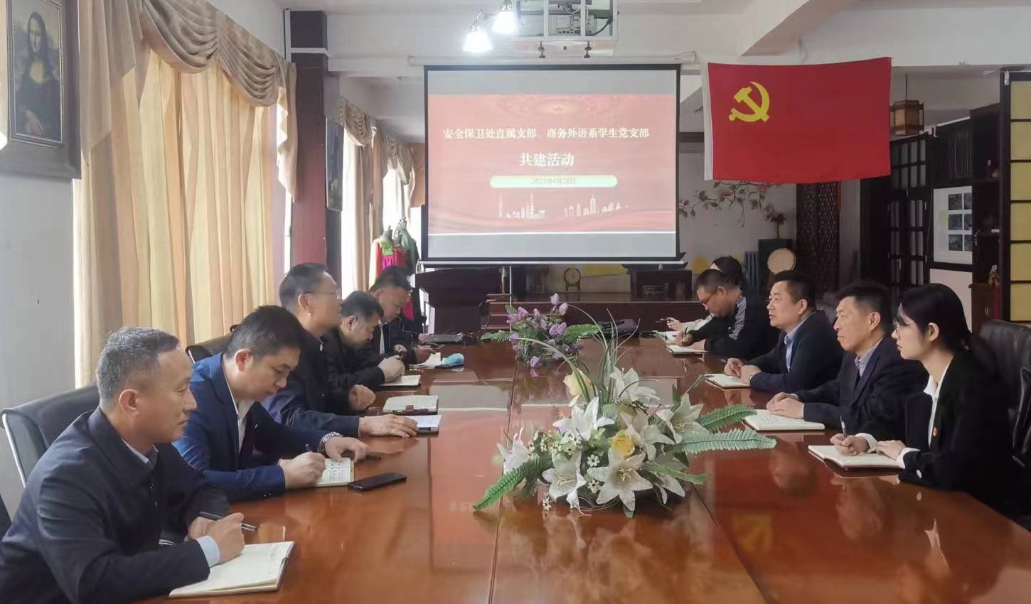 4月18日,商务外语系学生党支部与安全保卫处直属党支部在博学楼D208会议室开展支部共建活动,商务外语系学生党支部书记主持,两个党支部全体党员参加。