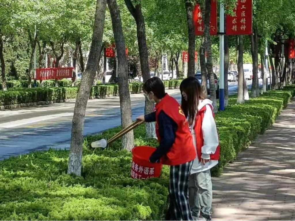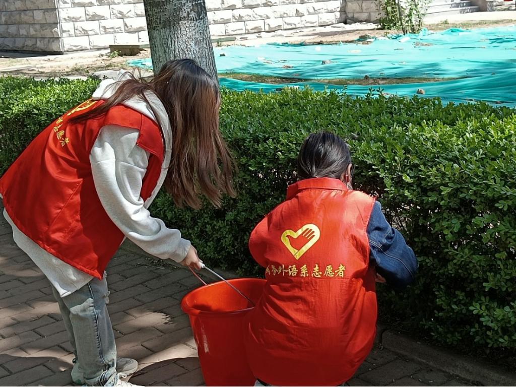 4月26日,商务外语系组织志愿者开展第六周“义工一小时”志愿服务活动。