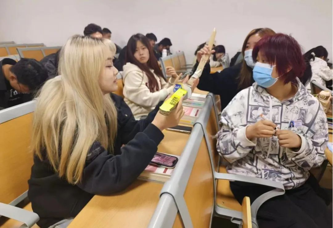 4月23日,外语社团樱花日语社在博学楼C203举办日本小手工制作活动,全体社员参加。