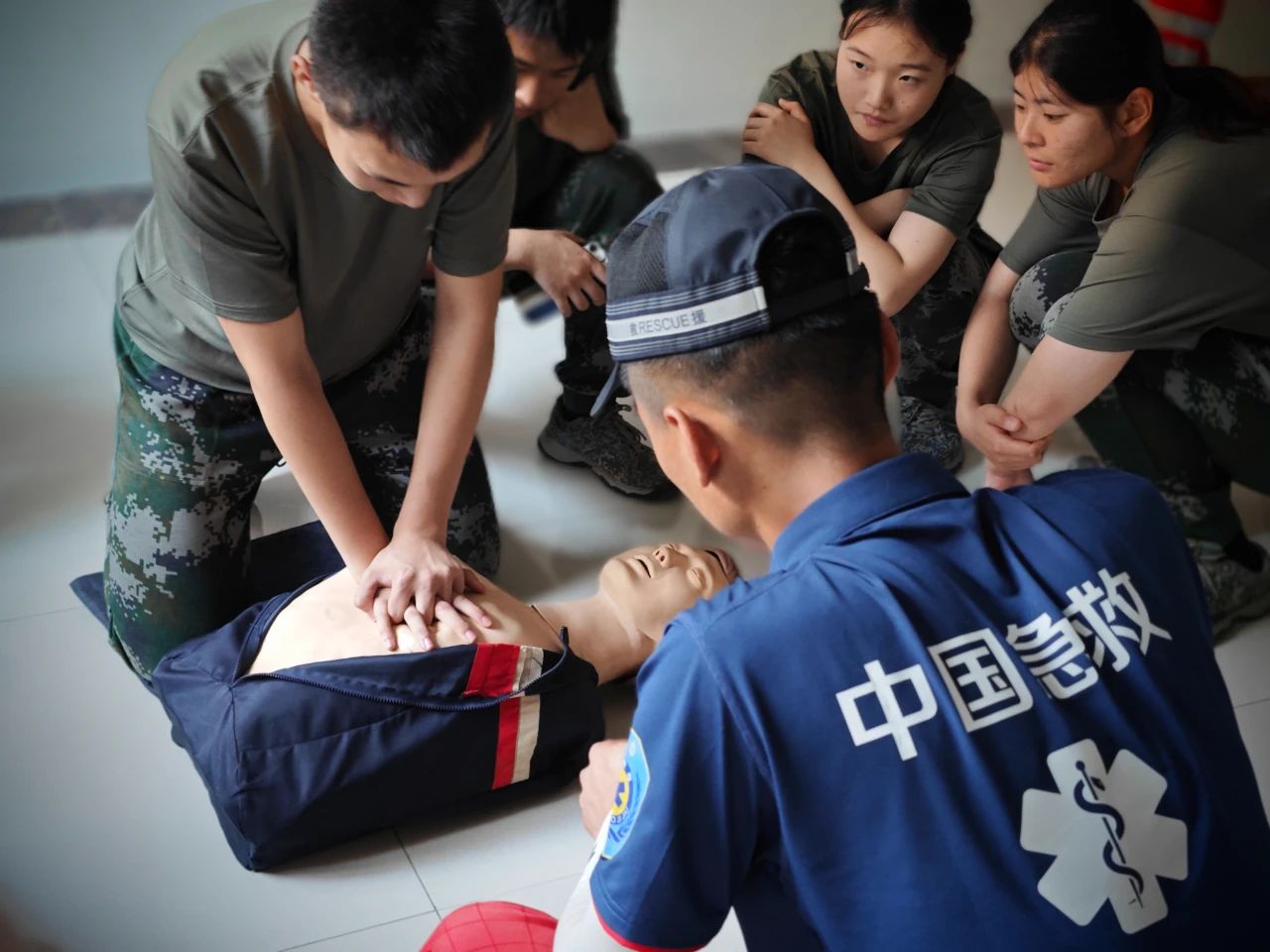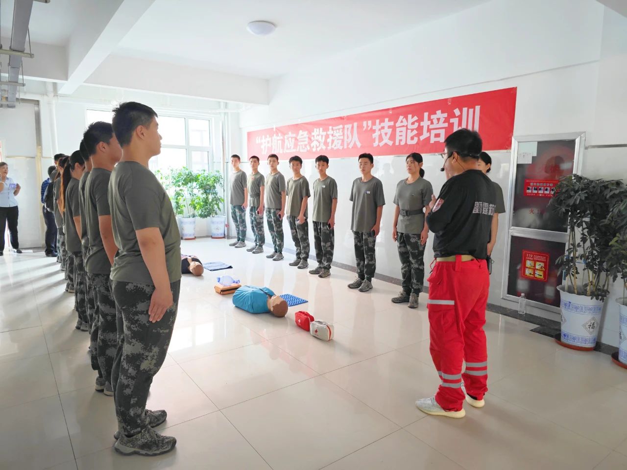 建设贡献力量。仪式后,潍坊雷霆应急救援中心培训师为救援队队员们进行了首次培训。培训师首先细致讲解应急救援基本知识,紧接着演示心肺复苏紧急救援处置流程.方法、技巧及注意事项,指导队员们逐一进行救援模拟。队员们认真听讲、积极提问、仔细领会,在模拟实操中运用知识、提升技能。他们表示将牢记肩上责任,强化为师生服务意识,增强应急救援综合能力,为妥善处理突发事件奠定基础。