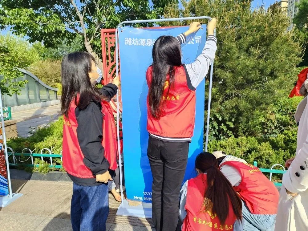 5月7日上午,商务外语系受潍坊市春雨义工服务中心邀请,组织40名大学生志愿者由辅导员带队到潍坊火车站为“潍坊首届状元文化节”提供志愿服务。