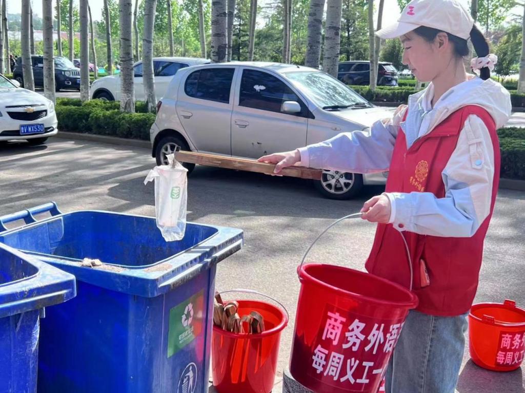 5月6日下午,商务外语系组织志愿者开展“五四垃圾分类”志愿服务活动。
