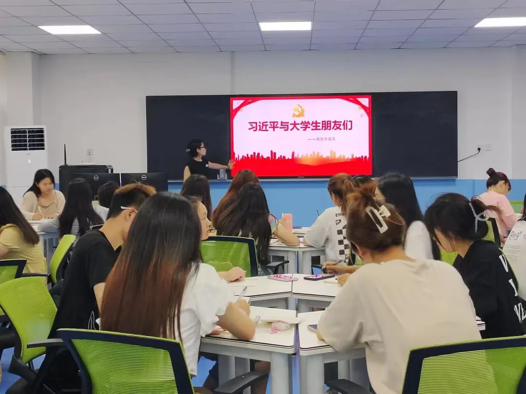为坚持用习近平新时代中国特色社会主义思想武装青年学子,引导青年学子牢记习近平总书记谆谆教诲、自觉坚定听党话跟党走的青春步伐,6月28日晚,商务外语系团总支在博学楼D209举办以“习近平与大学生朋友们”为主题的青马工程培训第十讲。