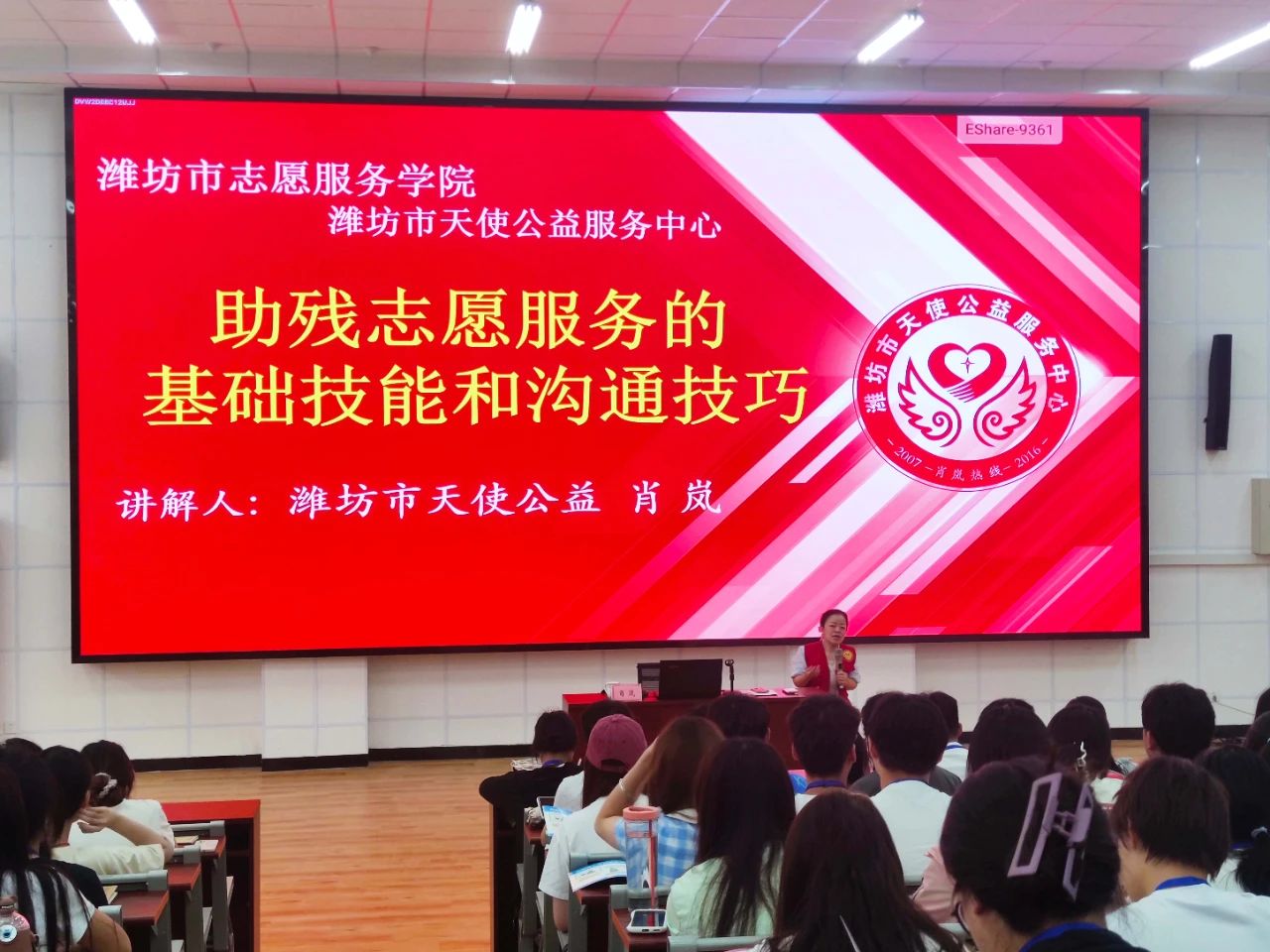 主讲老师围绕“助残志愿者的基础常识与技能”这一主题展开讲解,对志愿者提出了以下要求:一是要有成熟的服务心态,在服务工作中保持热情;二是要有敢于担当的责任意识,为自己所做的每件事情负责;三是要有吃苦耐劳的精神,团结协作做好服务工作;四是要提升针对性的服务技能,认真学习导盲、手语等助残服务技能。