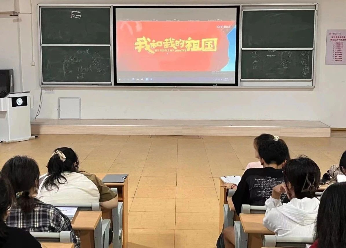 9月9日晚,商务外语系学生党支部党的基本知识培训班在博学楼C207组织“红色教育”观影第三期活动,全体学员共同观看爱国主义电影《我和我的祖国》。