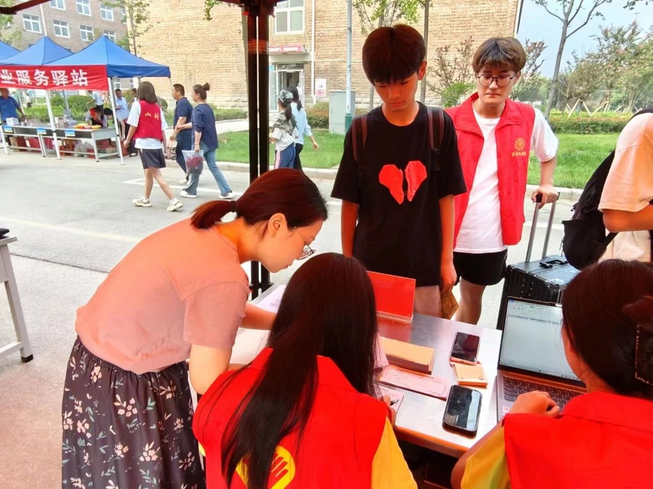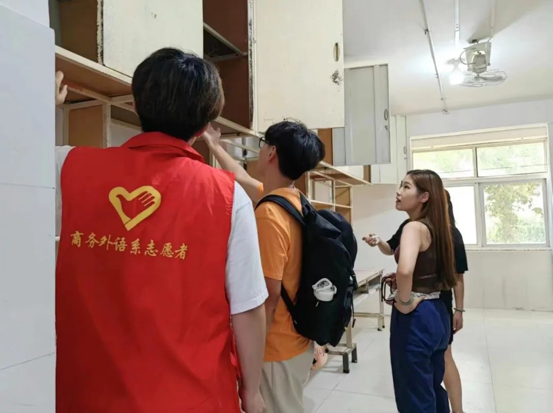 一张张热情的笑脸,一句句亲切的问候,商务外语系老师和志愿者以饱满的热情投入到迎新工作中。志愿者们“一对一”为新生“保驾护航”:当新同学抵达学校后,志愿者引导新同学来到新生报到处,协助他们进行身份核验、分配宿舍、领取公寓用品,并将他们送到宿舍。迎新过程中,师生真诚服务、积极奉献,传递着温暖与关爱。