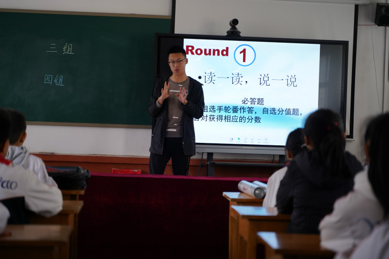 揭牌仪式后,商务外语系英语专业学生志愿者借助PPT,利用动画视频、卡通图画等手段,教小学生学英语、做游戏,同学们的注意力被牢牢吸引,英语兴趣被一再激发,并在快乐中收获多多。