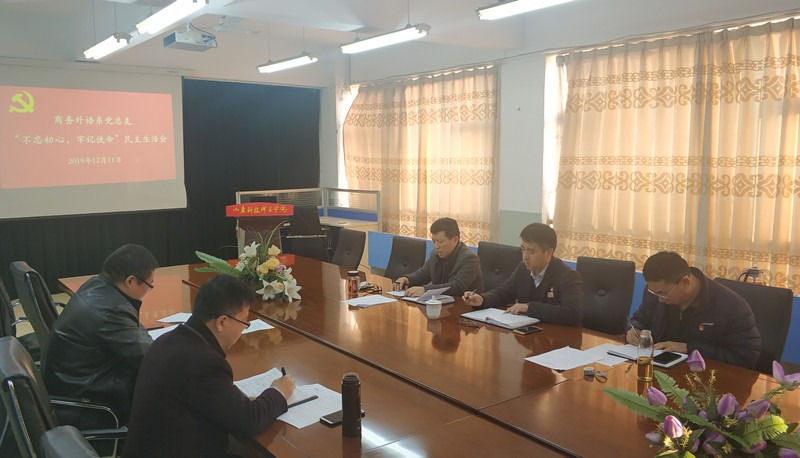 12月11日下午,根据学院党委统一部署,商务外语系党总支在博学楼D209会议室召开“不忘初心、牢记使命”专题民主生活会,学院党委委员、纪委书记、主题教育第八指导组组长秦建坤出席并作现场指导。